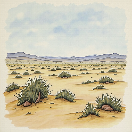 A peaceful and sun-drenched desert landscape, where stillness meets the horizon.
