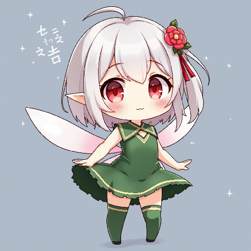 A cute little forest sprite with a sweet smile and flower in her hair.