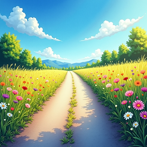 A serene path winding through a vibrant meadow, inviting you to a peaceful journey.