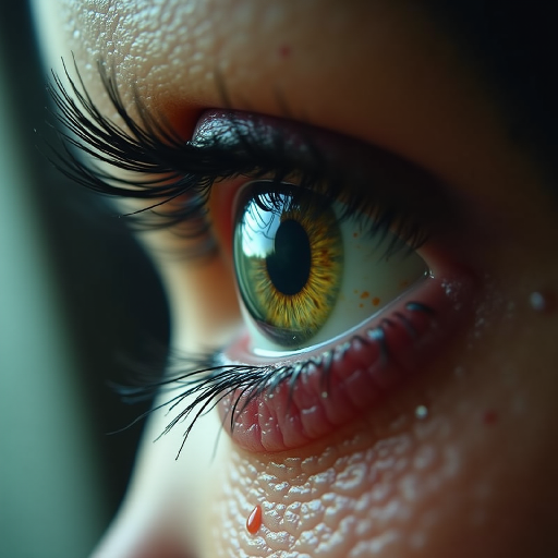 A macro view capturing the intricate details of an eye holding a mix of light, nature’s reflection, and a single drop carrying an unspoken story.